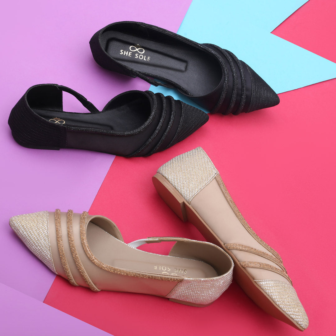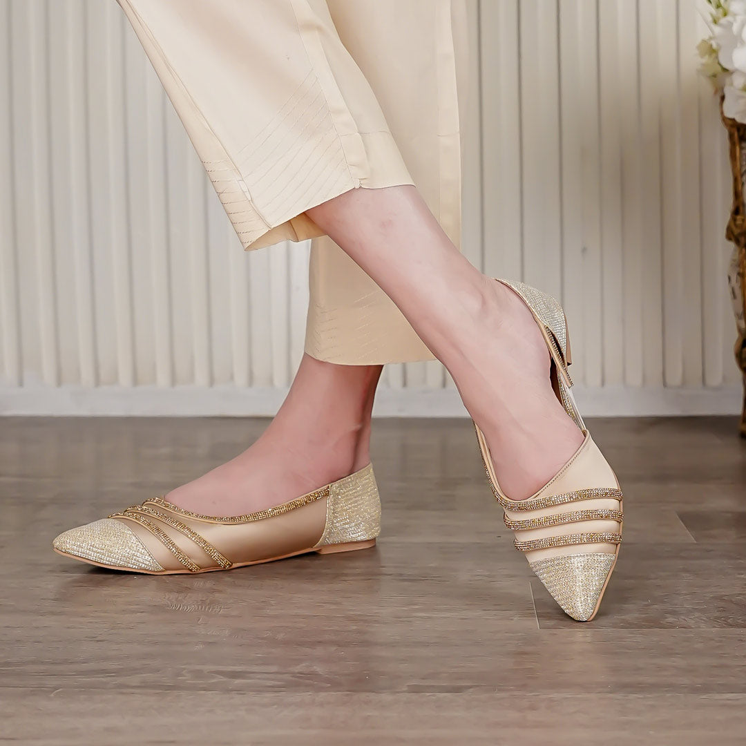 Flats pumps, Upper material glitter and satin fabric with Stone work Inside material Single layer PU Sole Java Sheet Size 35 - 42